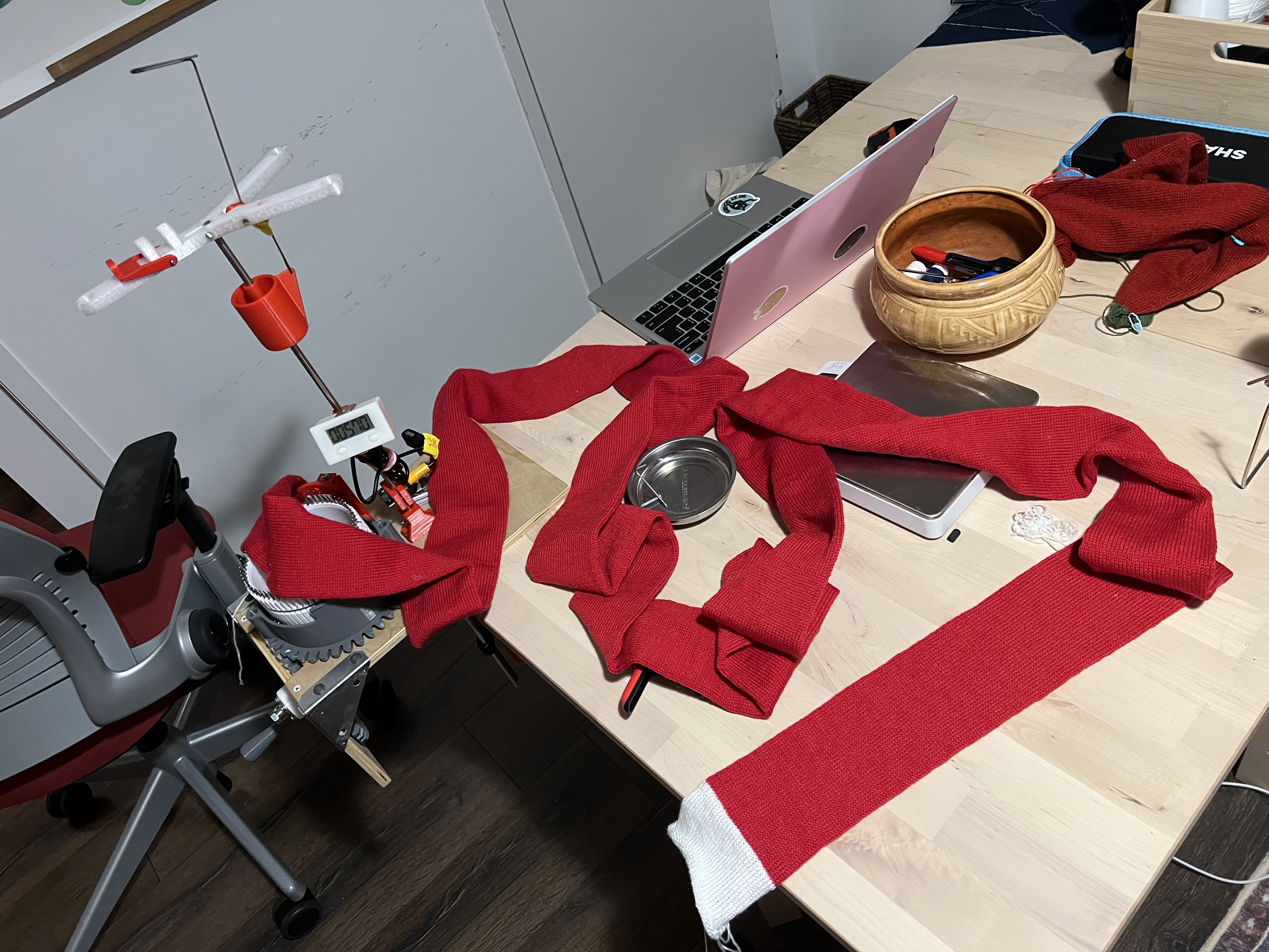Finishing my 3D-printed sock machine last year was awesome too. I used to absolutely hate wearing socks and I found knitting them unexciting. I’m the weird in-between where socks labelled F are too small and socks labelled M are too big, but also I have poor circulation and my feet are always cold. Now I have warm wool socks that bring me constant joy. I keep going to sleep with them on without noticing, but two years ago I would’ve gagged at even the thought of sleeping with socks on.